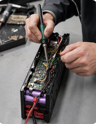Paspirtukų, dviračių, irankių,robotų, siurblių, sodo ir buitinės technikos Lithium-ion/Li-ion (LIČIO), NiCD, NiMh akumuliatorių keitimą, remontą ir atnaujinimą.